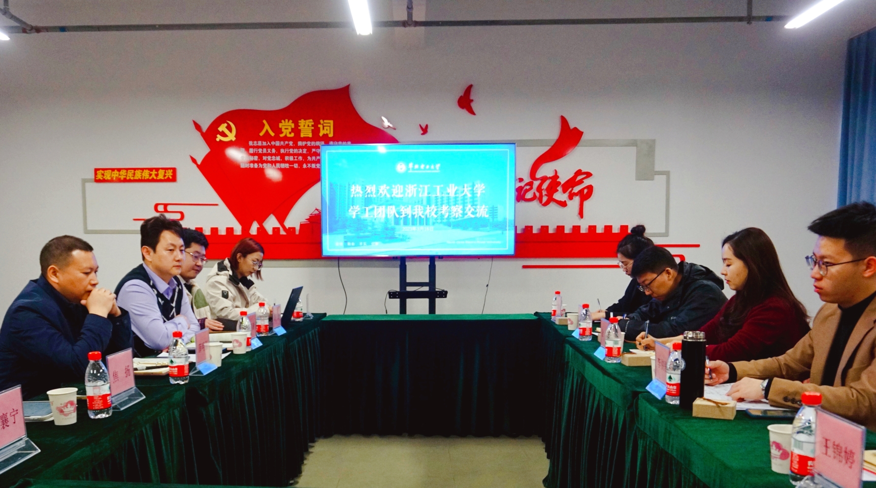 座谈会上,赵珥希、薛明磊对浙江工业大学同仁的来访表示热烈欢迎。浙江工业大学金鑫对两个澳门六合彩走势图 热情接待表示感谢,说明了此次调研的目的和希望交流的几方面问题,双方围绕学生工作、辅导员队伍建设等展开交流。