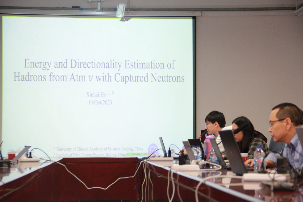 参会专家各高校、研究院来访学者分别对大气中微子测量、末态中子特征、方向重建、PID、能量重建等方向进行了报告分享与深入讨论。