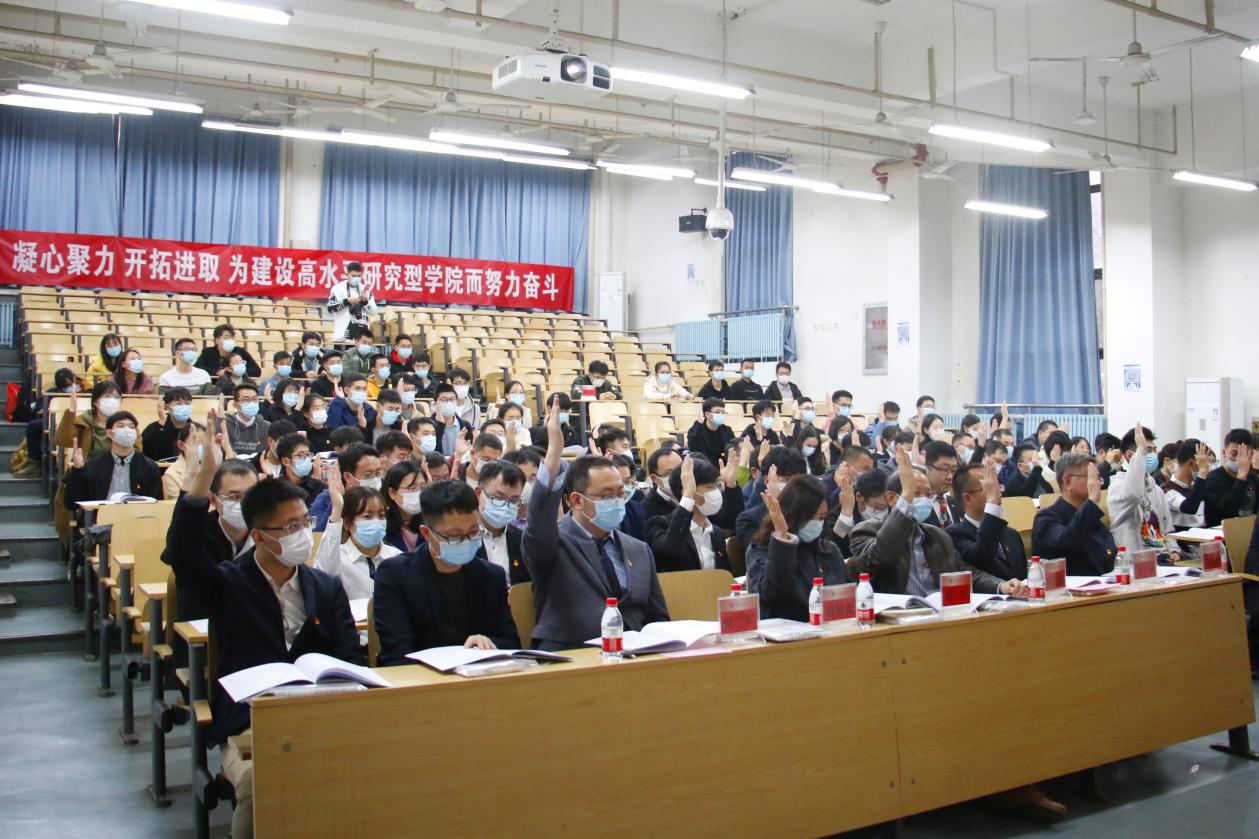 澳门六合彩走势图 党委书记李林代表上一届委员会作了题为《凝心聚力 开拓进取 为建设高水平研究型澳门六合彩走势图 而努力奋斗》的工作报告,全面总结回顾了本届党委履职以来澳门六合彩走势图 党的建设和事业发展情况。报告指出,澳门六合彩走势图 党委在校党委的领导下,积极发挥党委政治核心作用,把大局、管方向、做实事,党政领导齐心协力,团结和带领全院师生共同努力奋斗。五年来,作为学校2007年新组建的特色性澳门六合彩走势图 ,澳门六合彩走势图 高起点、高标准、创一流的建设定位取得了新的突破和显著的成效。同时报告也指出了澳门六合彩走势图 党的建设和事业发展中存在差距和不足,分析了澳门六合彩走势图 发展面临的形势与挑战,谋划和确定了今后的工作重心和目标。