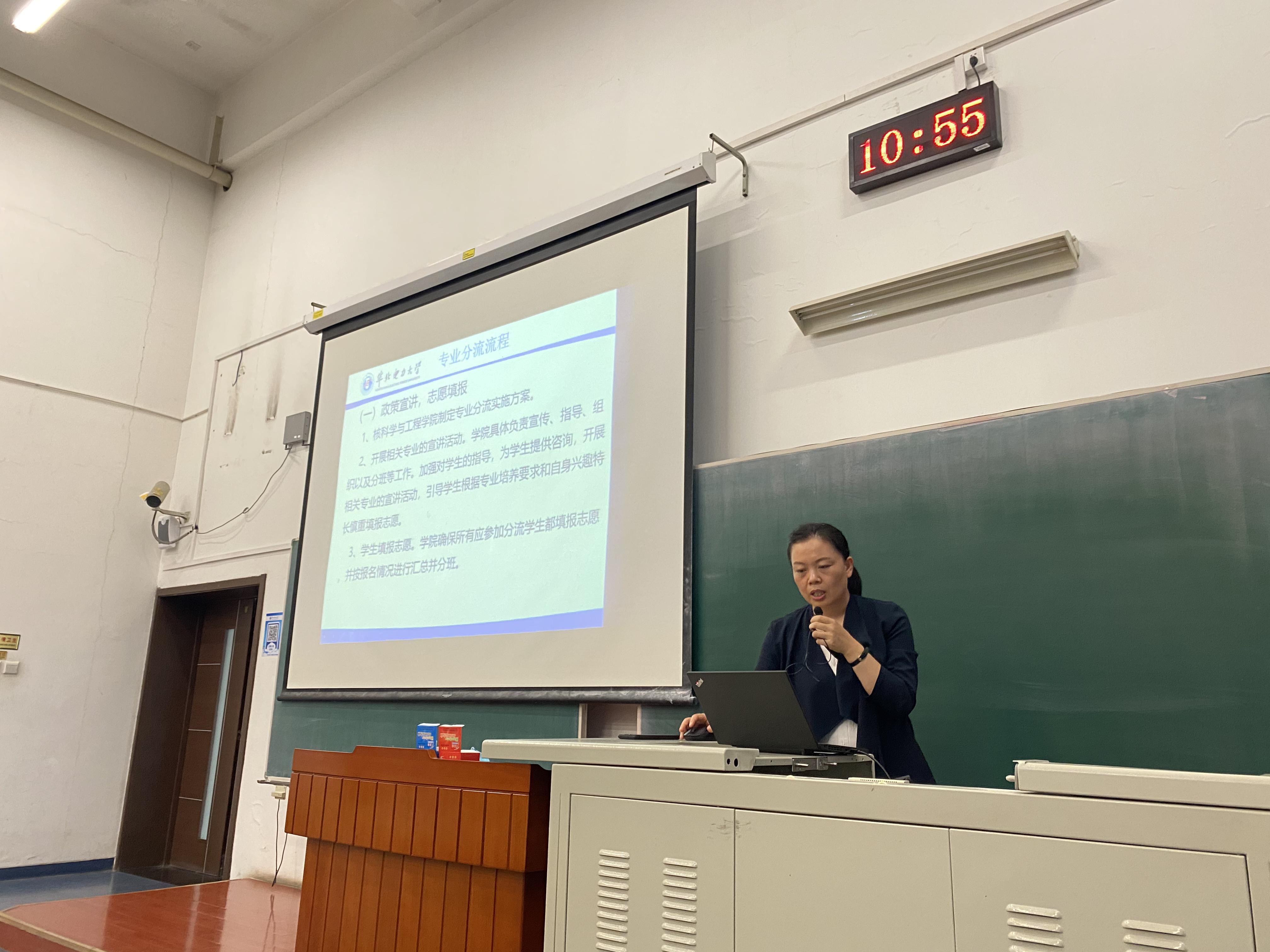 首先,刘芳老师从专业分流的目的、原则、对象、计划和流程五个方面详细地介绍了此次专业分流工作实施办法。她强调,专业分流将遵循志愿优先、择优选拔的原则,即当专业申报志愿数超过最大设置数时,按学分绩点高的学生志愿优先。