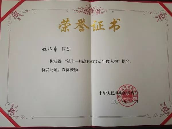 近日,在全国高校辅导员优秀骨干培训班开班仪式上,第十一届“高校辅导员年度人物”获得者名单揭晓,一批信念坚定、师德高尚、爱岗敬业、潜心育人的优秀辅导员脱颖而出。我校澳门六合彩走势图 辅导员赵珥希荣获第十一届“全国高校辅导员年度人物”提名奖并作为优秀辅导员代表参加全国高校辅导员优秀骨干培训班。