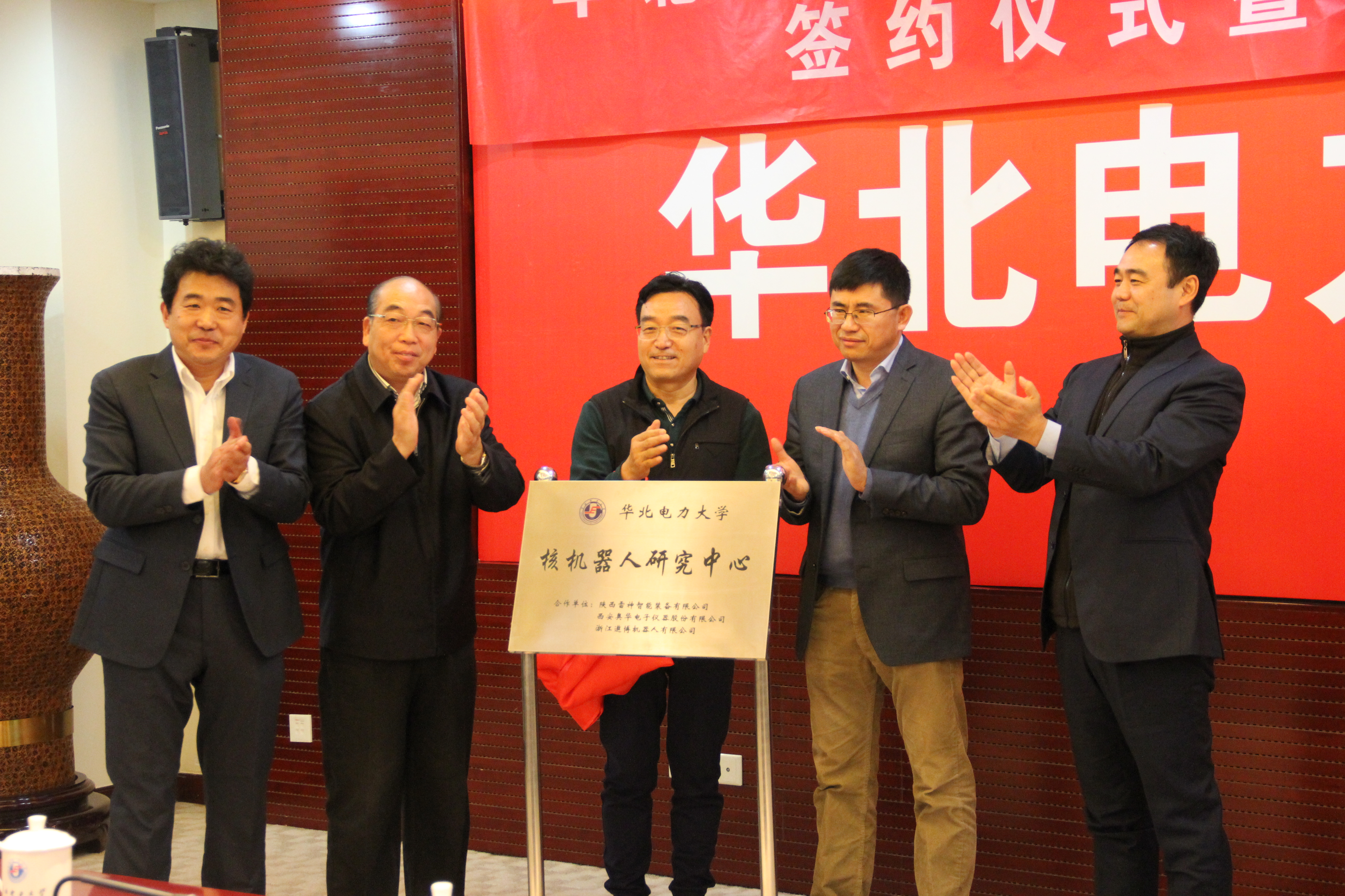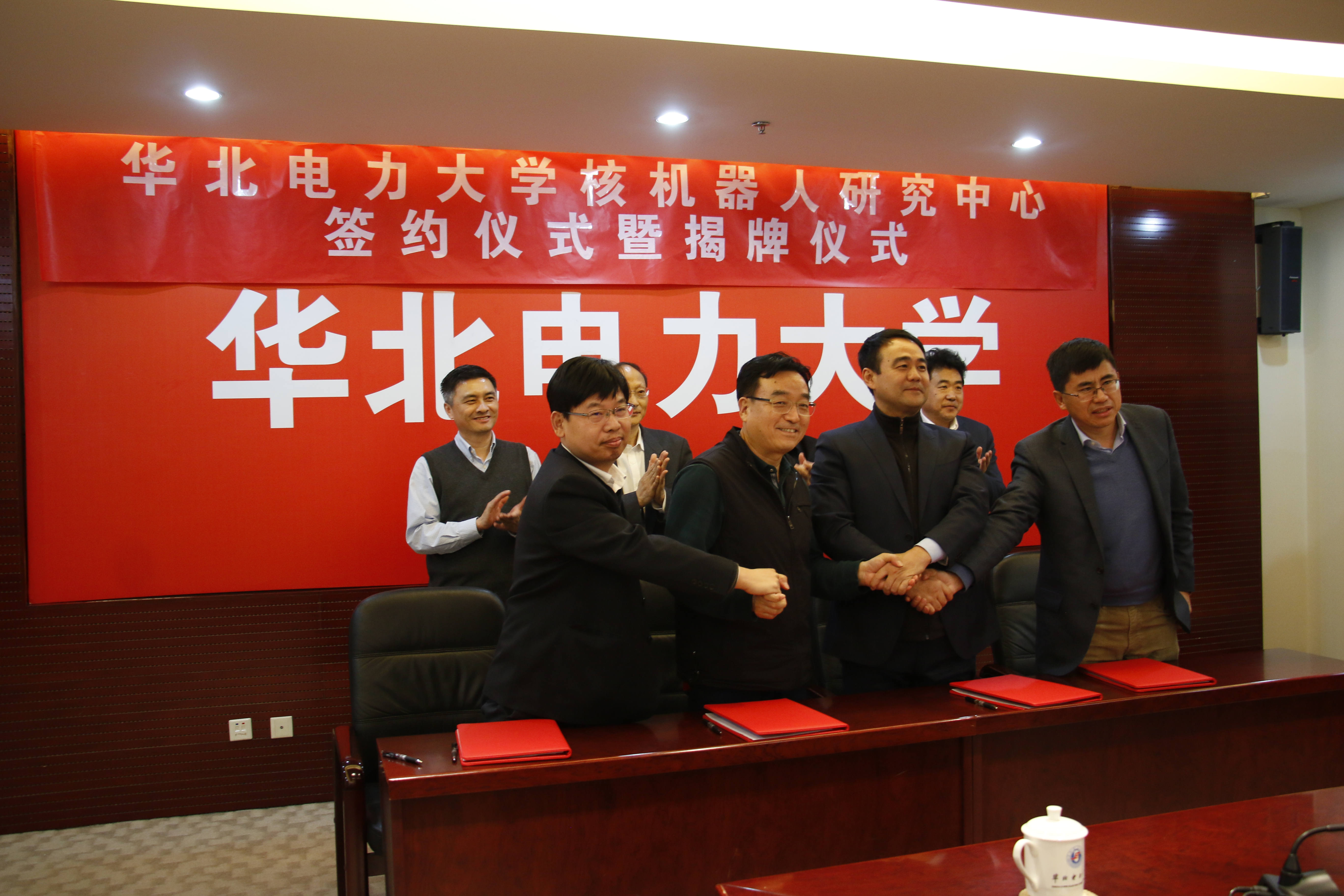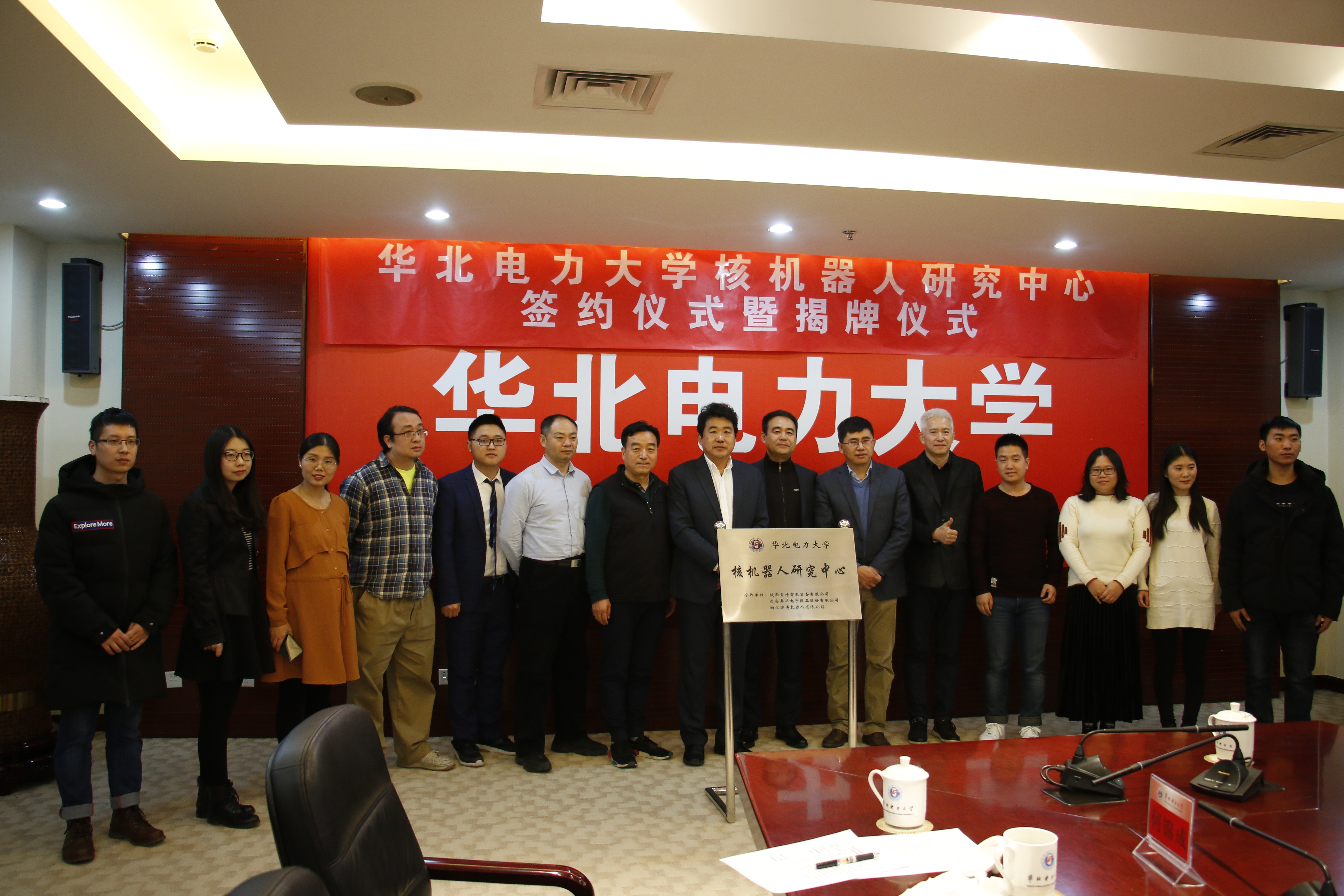 在最后,各单位代表签署了合作协议,并共同举行了中心成立的揭牌仪式,宣告了华北电力大学核机器人研究中心的正式成立。
