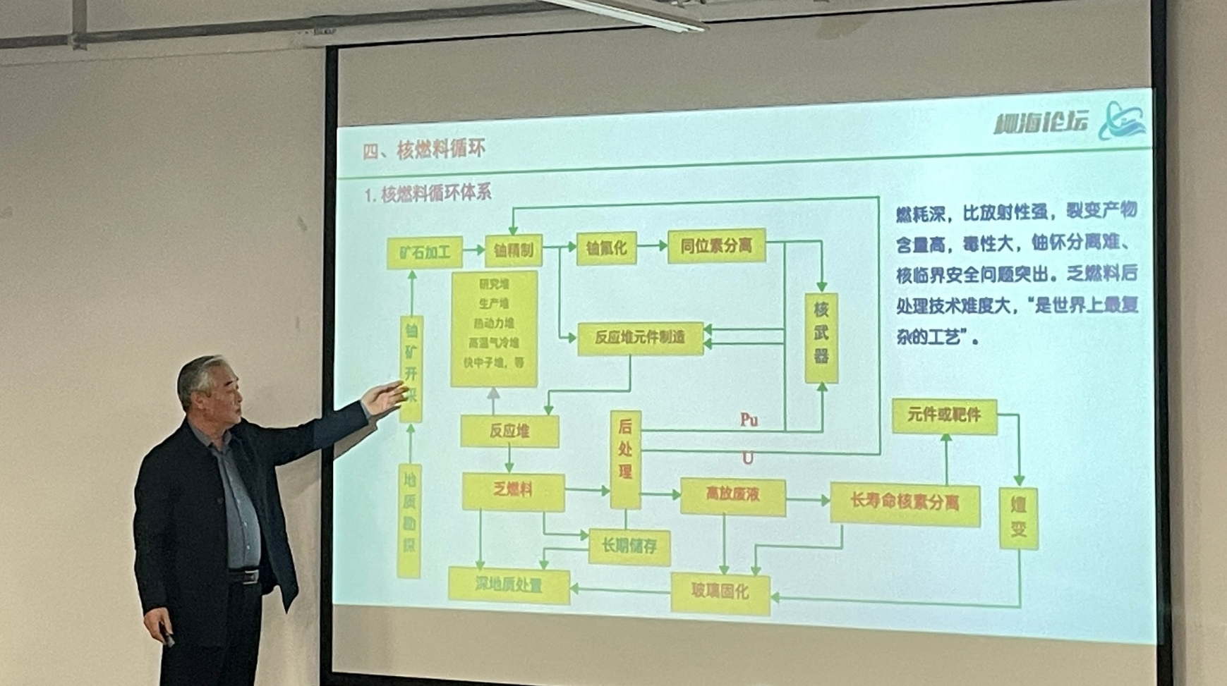 李金英教授从我国核工业体系的发展历程与现状、核能基础知识、核电与核反应堆、核燃料循环体系四个方面,系统的介绍了我国核工业从无到有、从弱到强,逐步构筑成完整的核工业体系,并形成了更高水平的核工业创新链和产业链。作为报告的核心部分,李教授详细介绍了核燃料循环体系中的各个环节,包括地勘、铀矿开采、矿石加工、铀浓缩、反应堆元件制造、乏燃料后处理以及放射性废物处置等。他指出,核燃料循环是我国核能可持续发展的关键环节,需进一步加强技术研发和创新,提高核燃料的利用效率。此外,李教授还简要介绍了中国核学会应用技术研究院的基本情况,包括学术活动、青年人才托举工程以及自主创新平台等,欢迎有志学子加入,共同推进核技术的应用和推广。